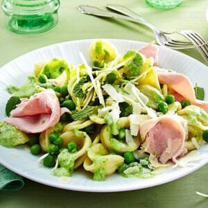 Frühlingspasta mit Erbsen & Schinken (ganz einfach) Zubereitungszeit: 25 Minuten Rezept für 4 Personen Zutaten…